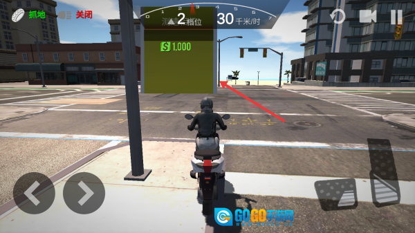 骑行时,留意道路上带有【$1,000】标识的绿色框,通过方向按键操控车辆驶入其中,即可获取奖励并探索城市。
