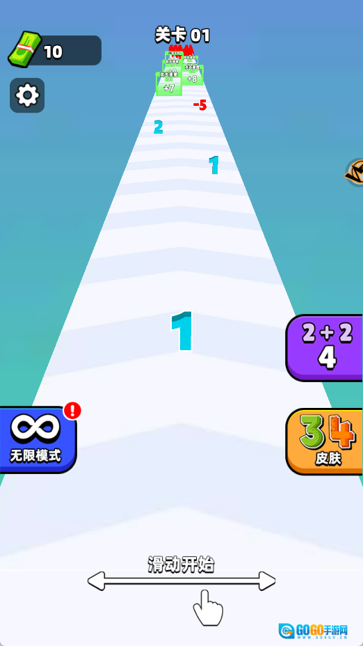 在跑酷过程中,除了自身数字会不断增加,还能收集到会跟随的小数字,这些小数字会和核心数字叠加在一起,一同朝着终点前进。