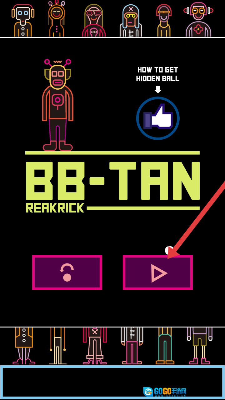进入BBTAN的游戏界面后,找到右侧那个带有三角箭头的紫色【播放键】按钮并点击,就能开启你的弹球闯关之旅啦。