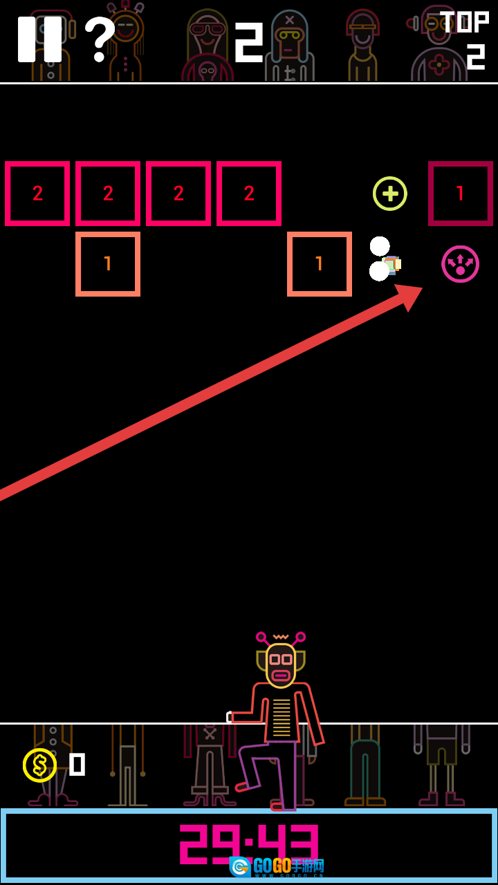 当遇到右侧那个粉色的旋转图标时,点击它就能触发多球效果。这样一来,多个弹球会同时撞击方块,从而让消除的节奏变得更快。