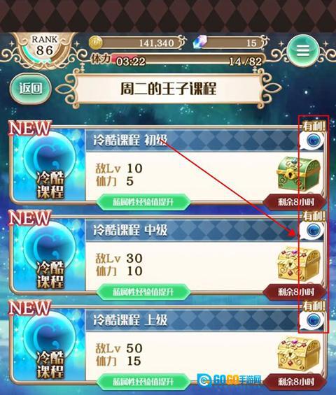 在关卡页面,玩家可查看关卡宝箱右上角的属性提示,该提示会告知哪种属性更利于通关。