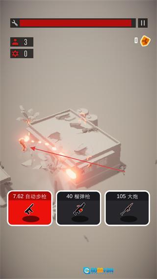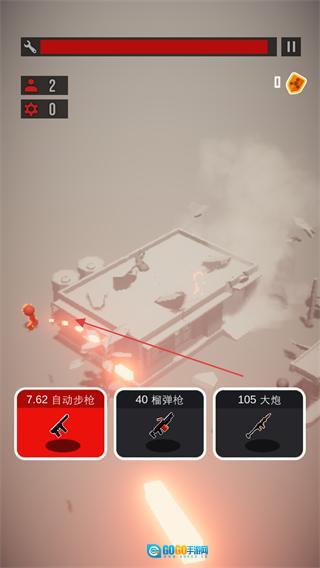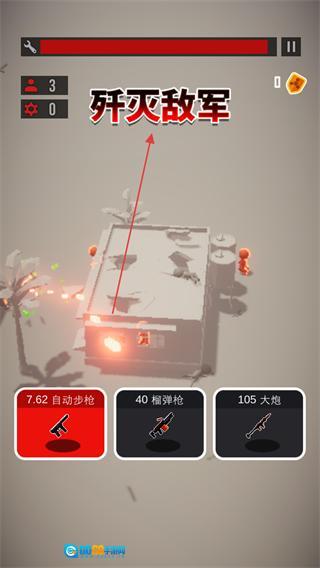 挑选7.62自动步枪、40榴弹枪、105大炮这类武器,向敌方目标展开进攻,歼灭红色小人敌人。