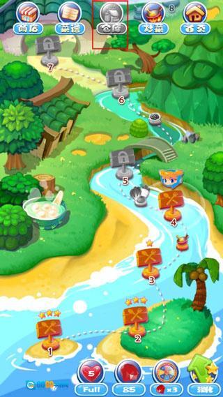 植物类产品收获时能得到200能量豆,磨坊加工的产品可收获300能量豆,畜牧相关产品能收获400能量豆,水产品则可收获500能量豆。获取能量豆的过程中也会同步收获食材,这些食材会存放在菜篮子图标内,点击该图标就能查看收获的食材;此外,也可以返回选关界面,点击“仓库”标签,那里会展示所有已获得的食材。