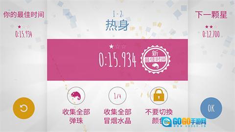 完成关卡后会出现最佳时间记录的提示,持续挑战并刷新最快记录就能获得小鱼印章啦。