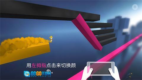 一般来说,玩家需要切换颜色并踩在对应颜色的平台上。要是小人在快要落到某个颜色的平台之前切换成该颜色,就能获得加速效果,这样玩家就能以更快的速度抵达终点了。