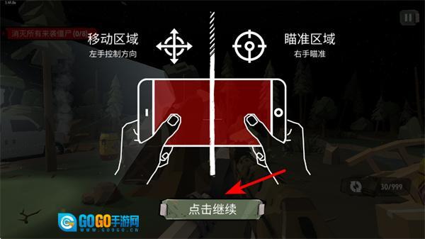 游戏开始时点击继续按钮,即可进入战斗教程环节,这是熟悉操作方式的关键步骤,点击后需留意左右区域的功能说明。