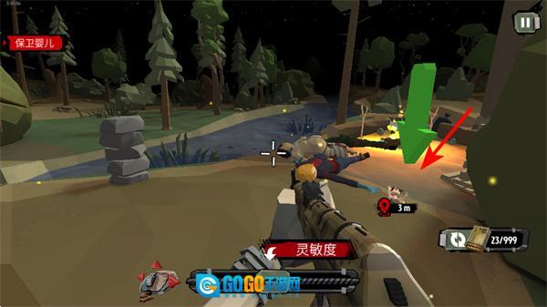 在保卫婴儿这类任务里,按照箭头所指的方向前往目标区域,就能达成任务要求;移动过程中还得同时消灭路上遇到的敌人,这样才能保证任务顺利完成。