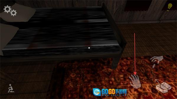 滑动屏幕右侧的空白区域来操控角色视角,把准心对准床铺这类物品后,点击右下角的抓取按钮就能进入躲藏状态。