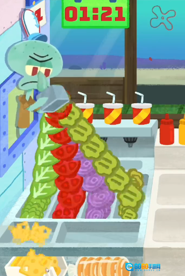 点击章鱼哥就能得到蟹黄堡的各类额外食材,每次点击都会自动补满所有食材。