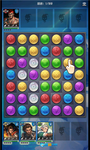 移动相同颜色的心就能消除。(要是消除了4个绿色心,就能积攒怒气值,这样我方战士就能释放大招了。)