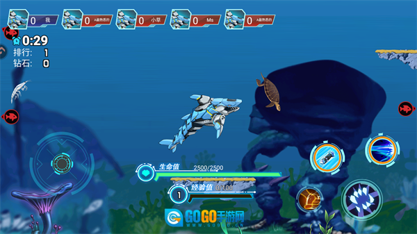 海洋大乱斗手机版是一款主打轻松休闲氛围的海洋题材游戏,其核心玩法灵感来源于经典的“大鱼吃小鱼”模式。玩家在游戏中将化身一只凶猛的鲨鱼,不同于传统玩法中单纯依靠体型优势吞噬猎物的设定,这里更强调主动出击——通过精准的攻击操作与释放丰富多样的强力技能来战胜其他鱼类,最终在兼具策略深度与酣畅爽快感的深海战场上成为一方霸主!
