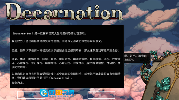第一次进入游戏时,系统会提示我们相关的游戏注意事项,这些内容需要我们仔细阅读并认真考虑后再开始游戏。