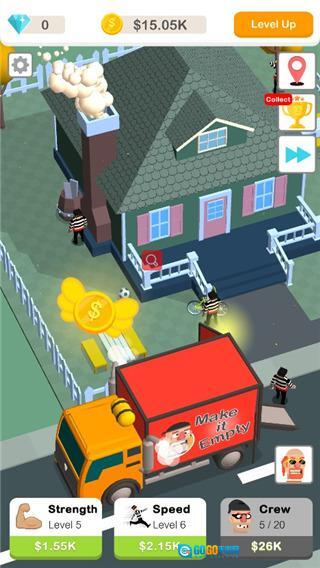 《猛男搬家》是一款趣味十足的模拟放置闯关游戏,英文名也叫Idle Robbery!。在游戏里,你将化身猛男,需要在规定时间内尽可能搬空场景中的所有物品。每进入一个新关卡,你都能提升猛男的数量、力量和速度,力求以最快速度完成场景搬运,获取更高收益,接着再升级速度与力量,从而形成良性循环。感兴趣的小伙伴,快来体验《猛男搬家》吧!