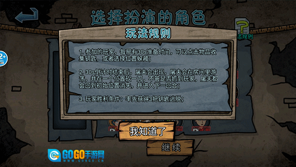 在这里我选择了逃脱模式,首先会让你查看玩法规则,之后你再挑选角色。