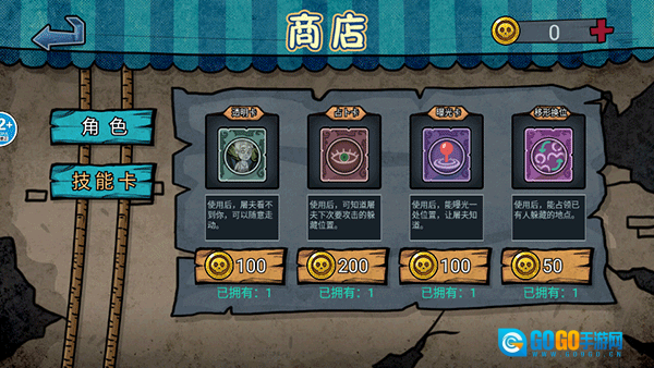 点击商店,就能购买各式各样的角色,而且每个角色都具备独特的技能。