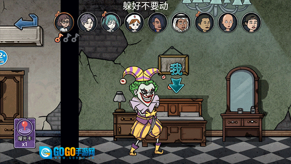 进入游戏后找到躲藏的位置,不要让小丑发现就可以了