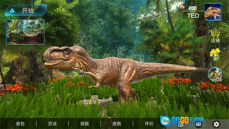 最后我们就能正式进入游戏,之后你可以借助虚拟按键操控自己的霸王龙展开冒险。