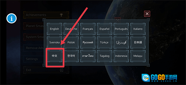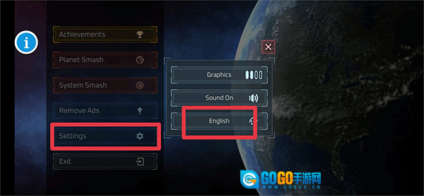 在游戏里找到settings设置按钮并点击,之后再点击english。