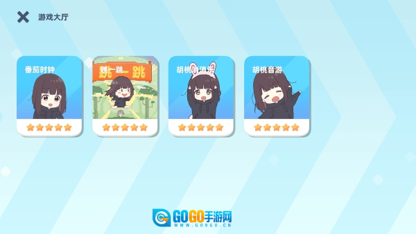 打开小游戏应用,里面包含番茄时钟、挑一挑、胡桃消消乐、胡桃音游等多款游戏。