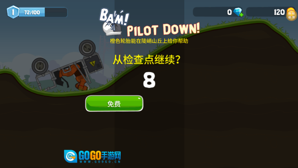 橙色轮胎能在陡峭的山丘上助你一臂之力,还能让你从检查点免费继续游戏。