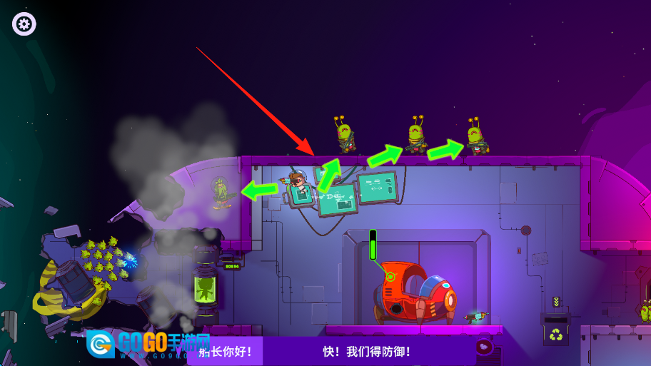 抵达防御点位,留意敌人动向,调整角色位置,利用场景中的装置阻拦敌人的推进。