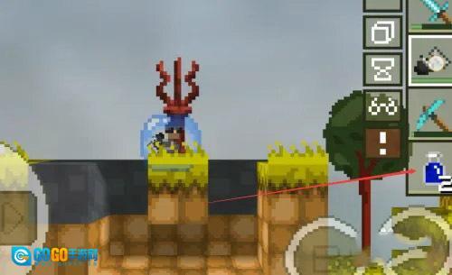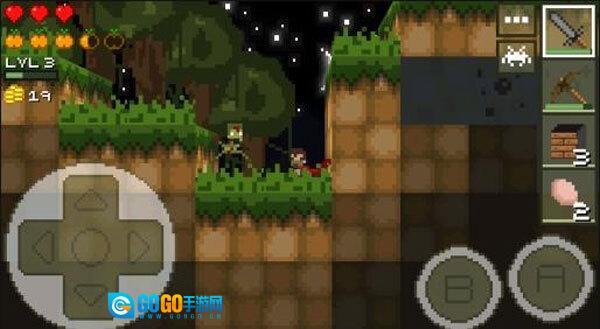 屏幕左下角设有控制移动的虚拟摇杆,可操控角色移动并向前探索;右下角的A键为跳跃键,连续点击两次即可触发两段跳,B键则是攻击键。在冒险过程中,角色需要借助跳跃、潜水、挖掘等动作来保护自身安全。