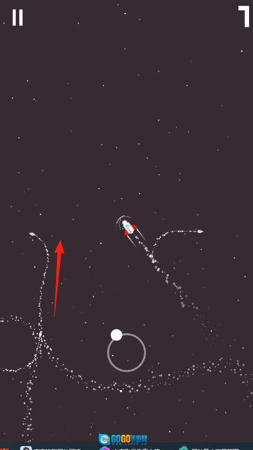 点击【TAPTOPLAY】(红箭头标识处)进入太空场景,通过点击与滑动屏幕来操控火箭飞行,在此过程中熟悉操作方式,重点练习躲避障碍物的移动技巧。