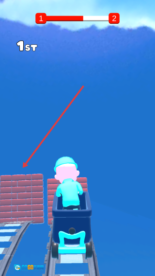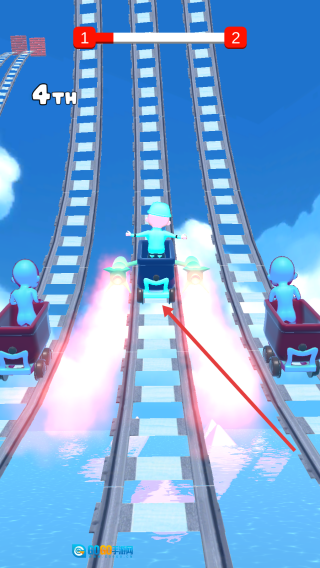 吃掉带有火箭图标的加速道具,能让你提升移动速度,从而超越对手的红色车厢,去争夺“1st”的排名。