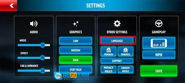 点击右上角的“settings”设置选项,找到并选择“language”,将语言切换为中文。