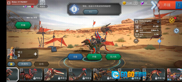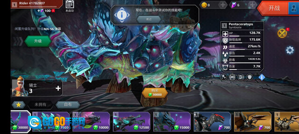 完成新手教程后,进入游戏的主角界面,玩家就能对自己的恐龙角色进行升级操作。
