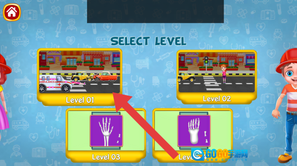 游戏设有“Level01(车祸救援)”“Level02(道路救助)”“Level03、04(手部X光检查)”等关卡,玩家能够挑选不同场景来体验救援、医疗等任务,它属于模拟应急救援与医疗处理的休闲类型游戏。