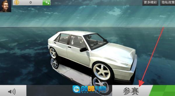 在车辆选择界面选定白色汽车后,点击【参赛】按钮即可进入赛车比赛,开启竞速挑战。