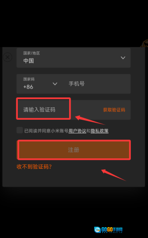 在勾选用户协议后填写验证码,再点击橙色的注册按钮,即可完成注册流程。