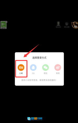 选择通过小米账号登录,点击红框标注的MI图标即可进入。