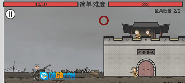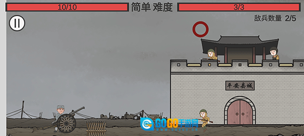 游戏开始后,我们要朝着城墙上的敌人和前来进犯的敌人开炮,把所有倭寇都消灭就能通关。