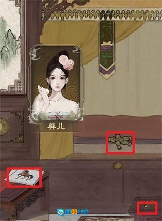 之后会有一个人进来打扰我们,接下来点击进入梅花坊推进剧情,剧情结束后能获得一把钥匙。然后和屏儿聊天可以获取不少线索,再询问“三年”是什么人,之后就能解锁屏儿的房间了。