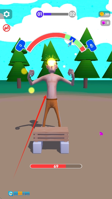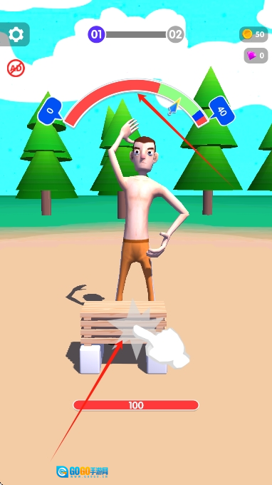 在新手关卡里,你可以借助虚拟手臂来劈砍木板,以此熟悉通过点击屏幕来触发劈砍的基础操作。