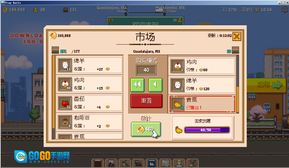 每个地区都会设置物品收集任务,提交指定物品就能获取奖励……(这笔买卖完全是亏本的,所以只要能完成任务就行)比如交25个给1000奖励,50个给2000,150个才给300……1000个居然只给5000(简直离谱,这批发商也太黑了)。由于要推进地区开发,收集任务是必须完成的,所以我摸索出了下面这个操作方法:看到该地区在收香蕉,我先卖了40多个,接着切换到其他交易品界面,调整好数量后,点击了重置!!!这里必须强调——重置、重置、重置……(已经说三遍了)。操作完之后,就能看到刚才卖掉的香蕉重新出现在市场里了。