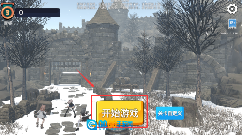点击黄色开始游戏按钮,进入雪地城堡关卡挑战。