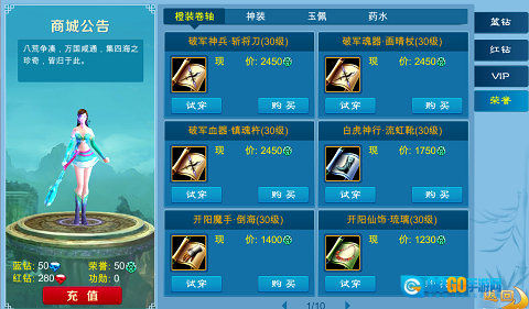 出售荣誉装备,荣誉装备都是橙装,有时间限制但可以续时,努力赚取荣誉值吧。