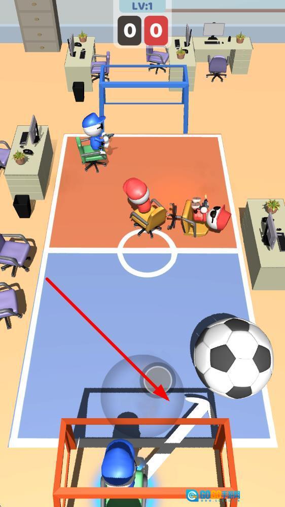 完成剧情模式的挑战后,就能解锁包括「办公室」「教室」在内的5大主题球场。每个球场都设有独特的专属机关,比如教室场里的讲台斜坡可以让射门反弹改变方向,还能参与「转椅世界杯」联赛的竞技挑战。