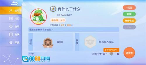 5、关注选定的朋友,可以显示该好友的游戏主页。