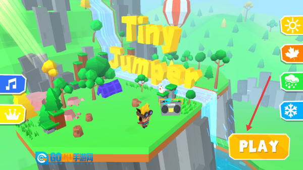 在主界面点击黄色的PLAY按钮,即可进入关卡;之后操控角色开启跳跃冒险,挑战各种地形并收集道具。