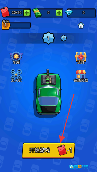 点击“开始游戏”按钮,消耗1个道具就能进入游戏,开启赛车战斗的旅程。