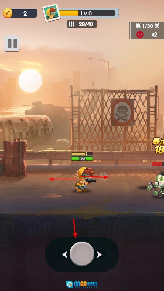 滑动下方的摇杆来控制角色移动,调整好站位对准僵尸,然后启动射击流程。