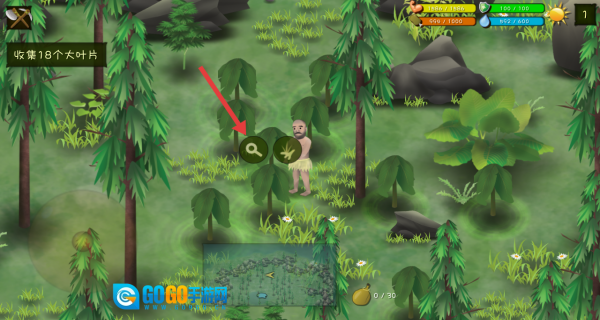 用收集来的物资打造简易工具,比如用石斧砍树、石矛捕捉小型动物,另外还要寻找水源和能吃的野果,以此保持生命值和饱腹感。