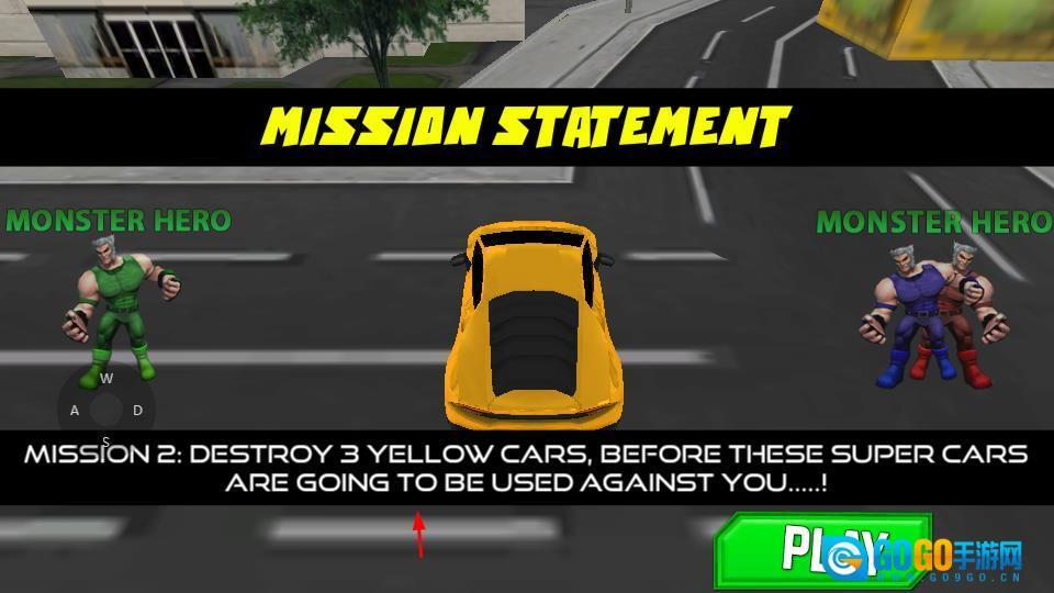 在任务界面中点击绿色的PLAY按钮,即可启动摧毁3辆黄色汽车的任务。