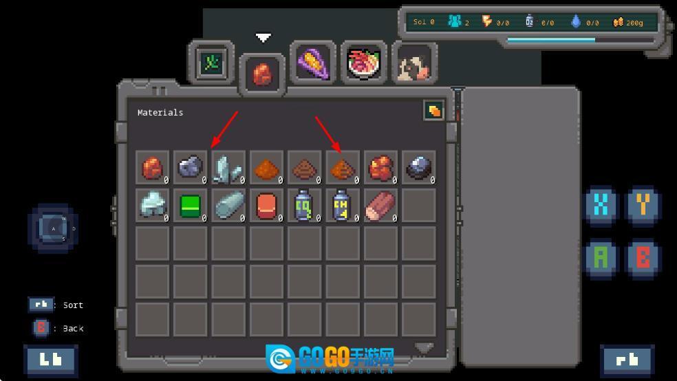 踏入可探索的区域,采集矿石、晶体之类的材料,将其放进背包来管理资源。