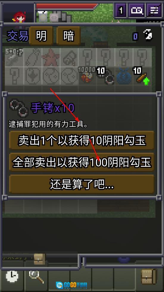 进入交易界面后,像手铐这类道具,可以选择单个或全部卖出,以此来获取阴阳勾玉。
