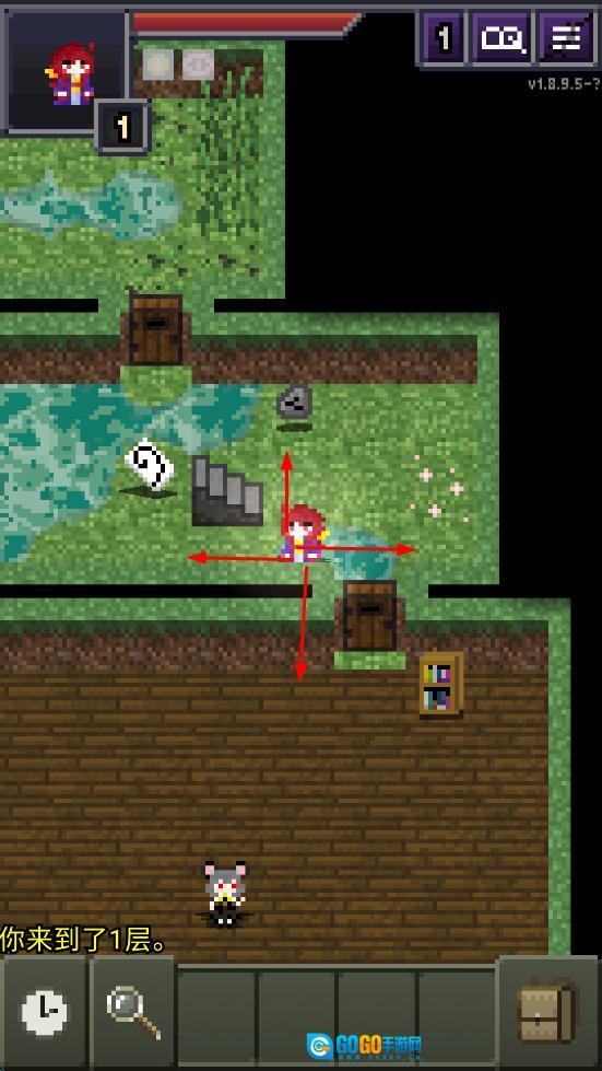 操控角色进行上下左右的移动,探索第一层地图,寻找并发现宝箱、怪物等各类场景元素。